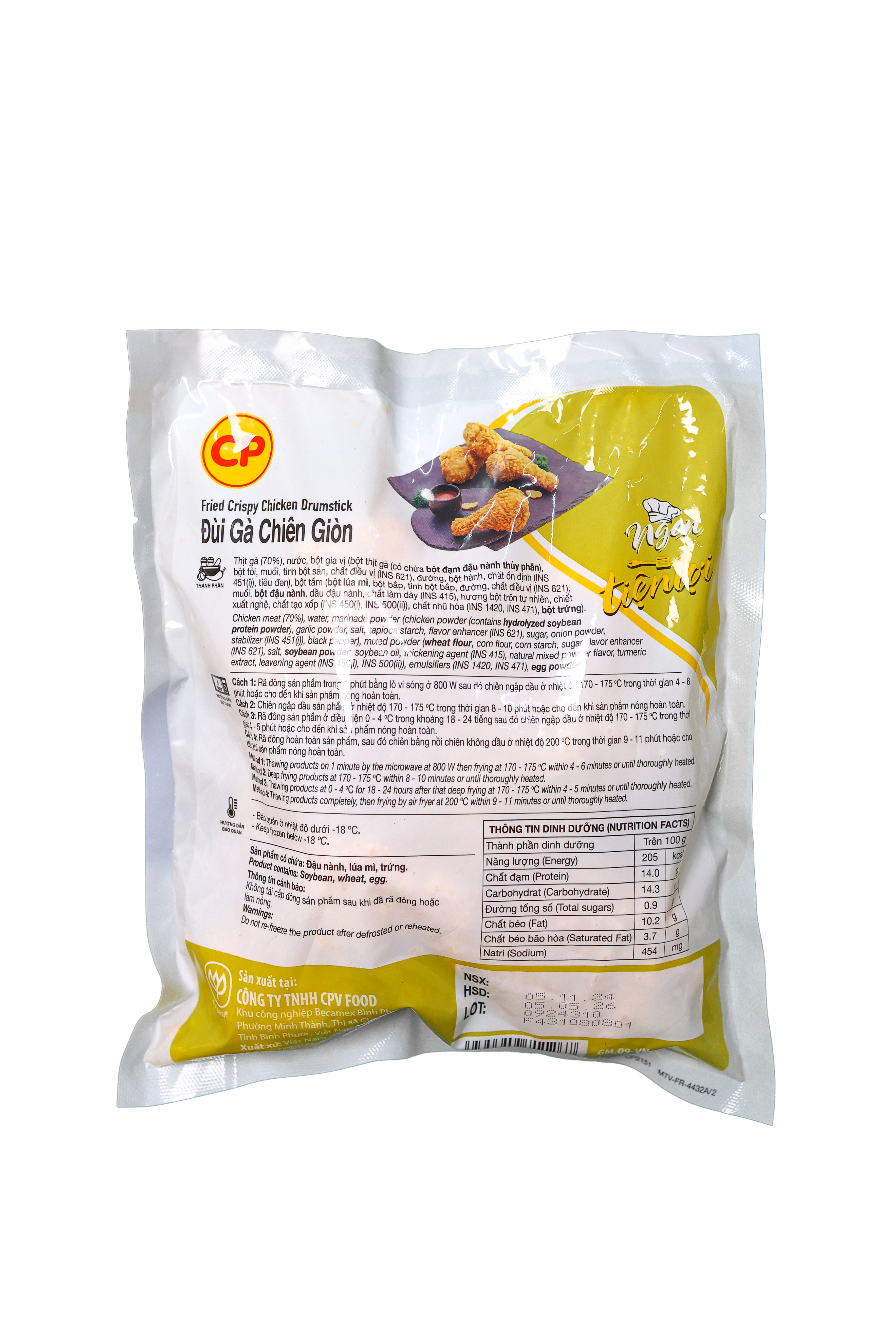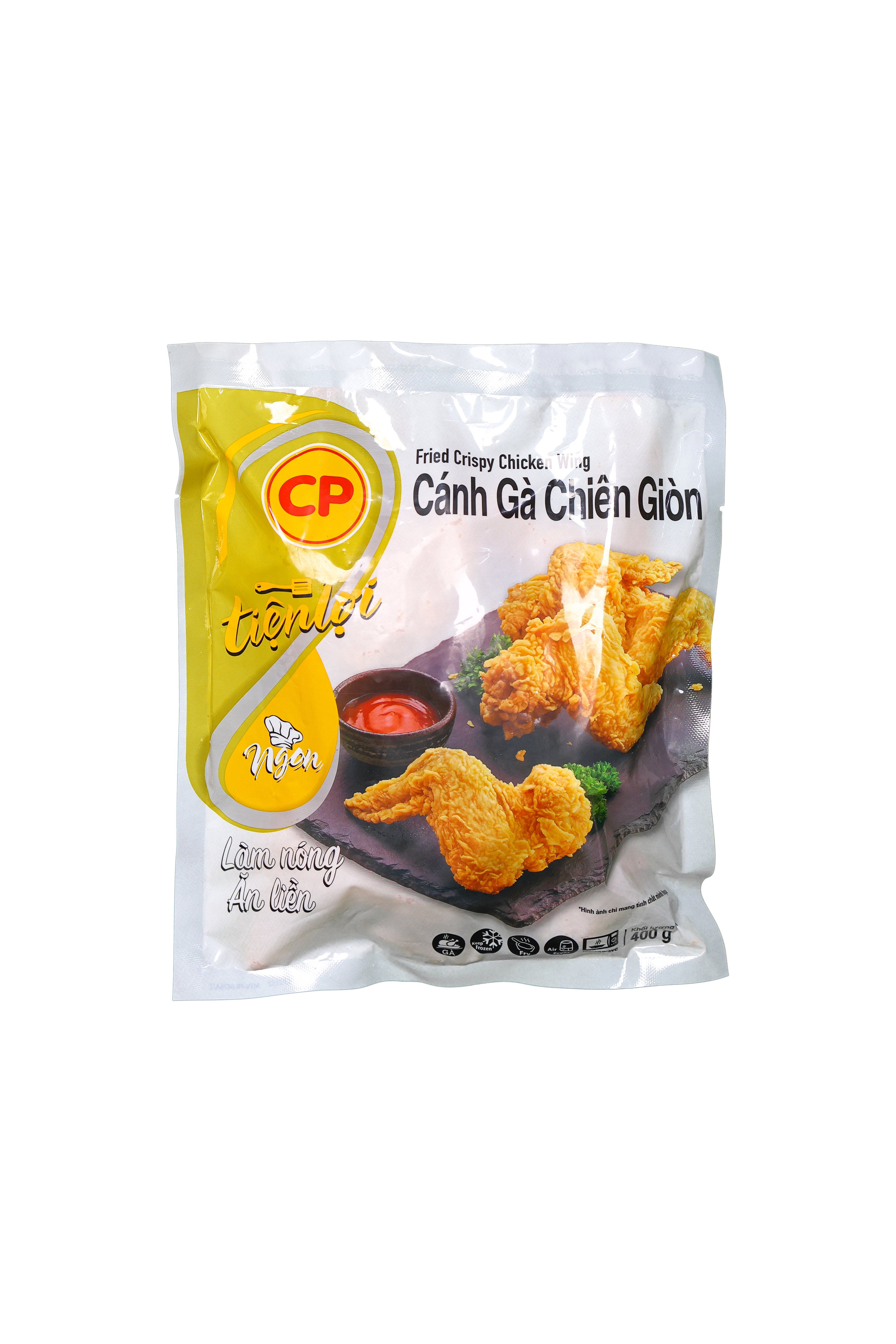 Cánh Gà Chiên Giòn CP 400gr là sản phẩm gà chiên sẵn, được chế biến từ những chiếc cánh gà tươi ngon, tẩm ướp gia vị đặc biệt và chiên giòn vàng, mang đến hương vị thơm ngon, giòn rụm bên ngoài, mềm mại và ngọt thịt bên trong. Đây là lựa chọn lý tưởng cho những bữa ăn nhanh, bữa tiệc hay món ăn vặt, dễ dàng chế biến và thưởng thức ngay.